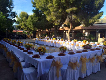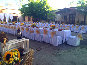 | Servicio de Banquetes: Hotel Santa Fe se pone a su disposición para brindarle el servicio de banquetes para Bodas, XV años, reuniones familiares, etc. , con capacidad de hasta 250 personas, contando con una amplia gama de platillos tanto nacionales como internacionales elaborados por nuestra Chef Lic. Delfina Castañeda Cantú. Hotel Santa Fe cuenta para este tipo de servicio de: Mobiliario, Loza, Mantelería, Capelos, Meseros, Decoración, Mesas de Snack, Mesas de Postres. | |||||||||||||||
